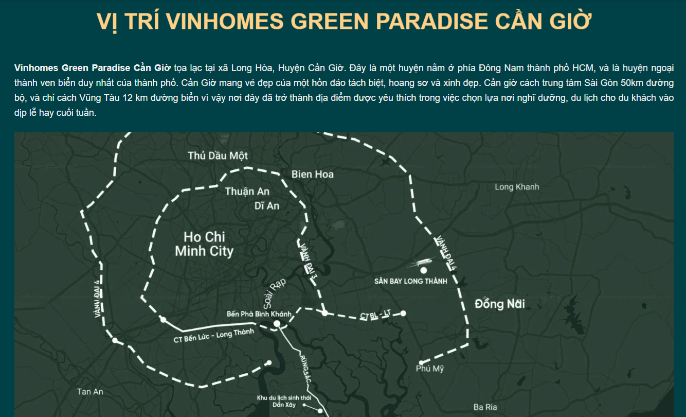 Vinhomes Green Paradise nằm ngay trong bán kính khoảng 30 km so với tam giác logistics Long Thành – Cái Mép – Cần Giờ, khu vực được đánh giá là động lực chính cho chuỗi cung ứng phía Nam.