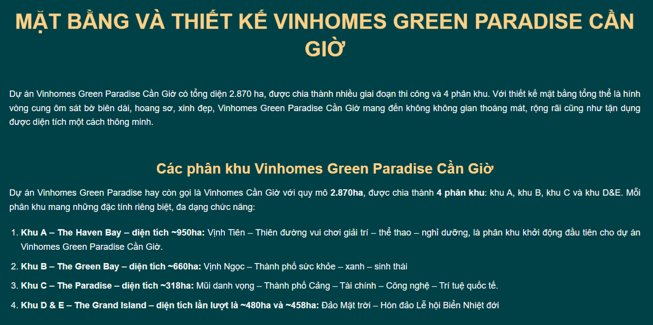 Vinhomes Green Paradise Cần Giờ là một dự án lớn gần đây của tập đoàn tầm cỡ, có tiếng vang lớn trong lĩnh vực bất động sản – tập đoàn Vingroup. Với vị trí tiềm năng của mình Vinhomes Green Paradise Cần Giờ chắc chắn sẽ trở thành dự án nhận được sự quan tâm đặc biệt. Vì vậy hôm nay chúng tôi sẽ giới thiệu sơ lược về dự án này, nhằm giúp cho quý khách hàng có một cái nhìn rõ nét hơn về Vinhomes Green Paradise Cần Giờ.